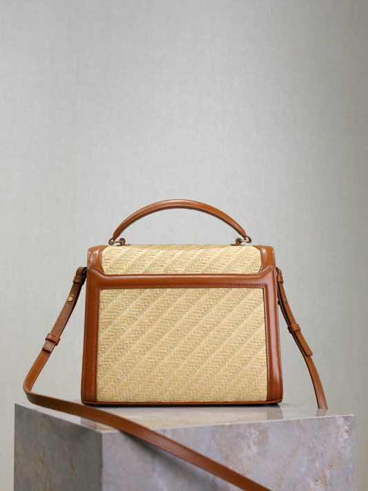 YSL Cassandra Small raffia bag